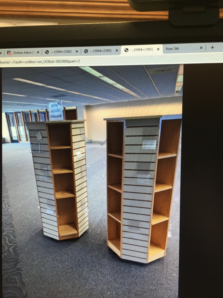 Volunteers recently traveled to the Mt. Clemens Library & White Lake Library to pick up a donation of furniture and fixtures for our new building. These items will remain in storage until we’re ready to use them.